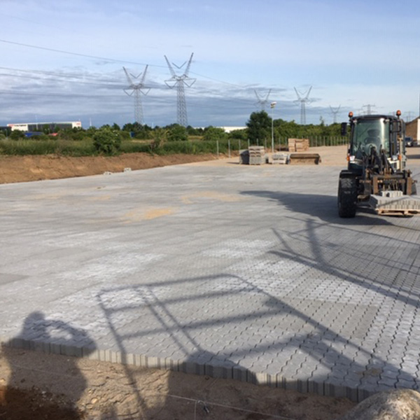 Vi vil derudover også kunne tilbyde diverse udendørs oplag, idet yderligere omkring 10000 m2 befæstes heraf omkring en trediedel med Uni-lock sten for tung trafik og de resterende som grusplads for diverse opbevaring.